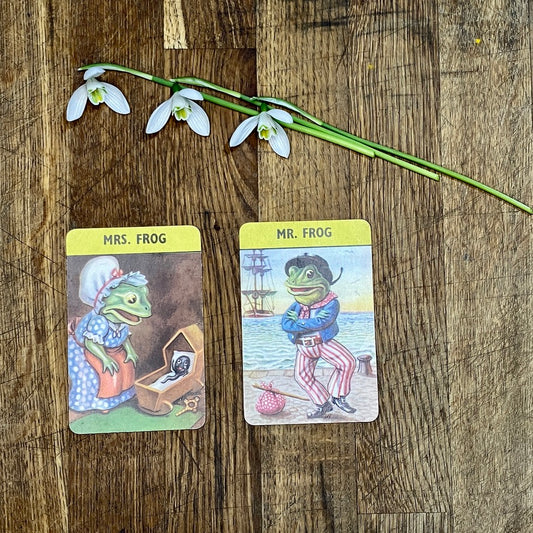 Miss Frog and Master Frog playing cards from the Woodland Happy Families card game
