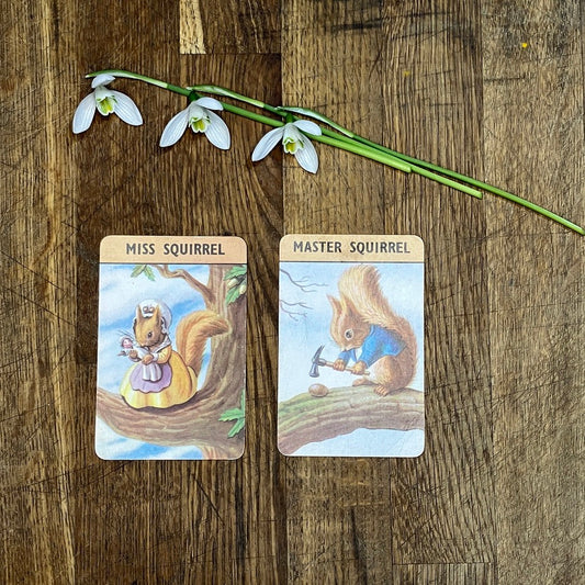 Master Squirrel & Miss Squirrel playing cards from the Woodland Happy Families pack