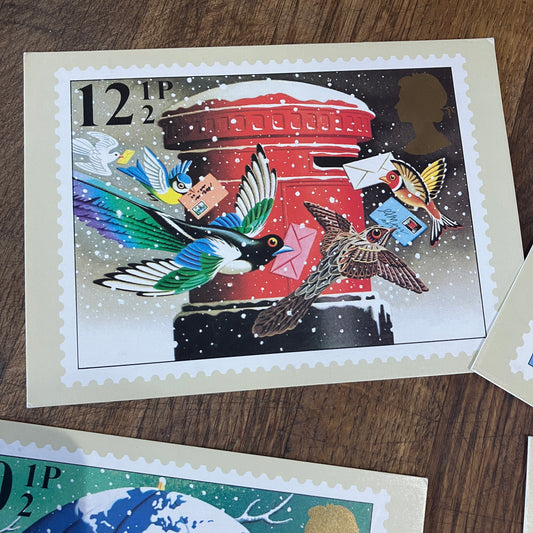 Vintage Christmas postcards with first day issue stamps ~ set of 5 | British birds by Tony Meeuwissen | 1983
