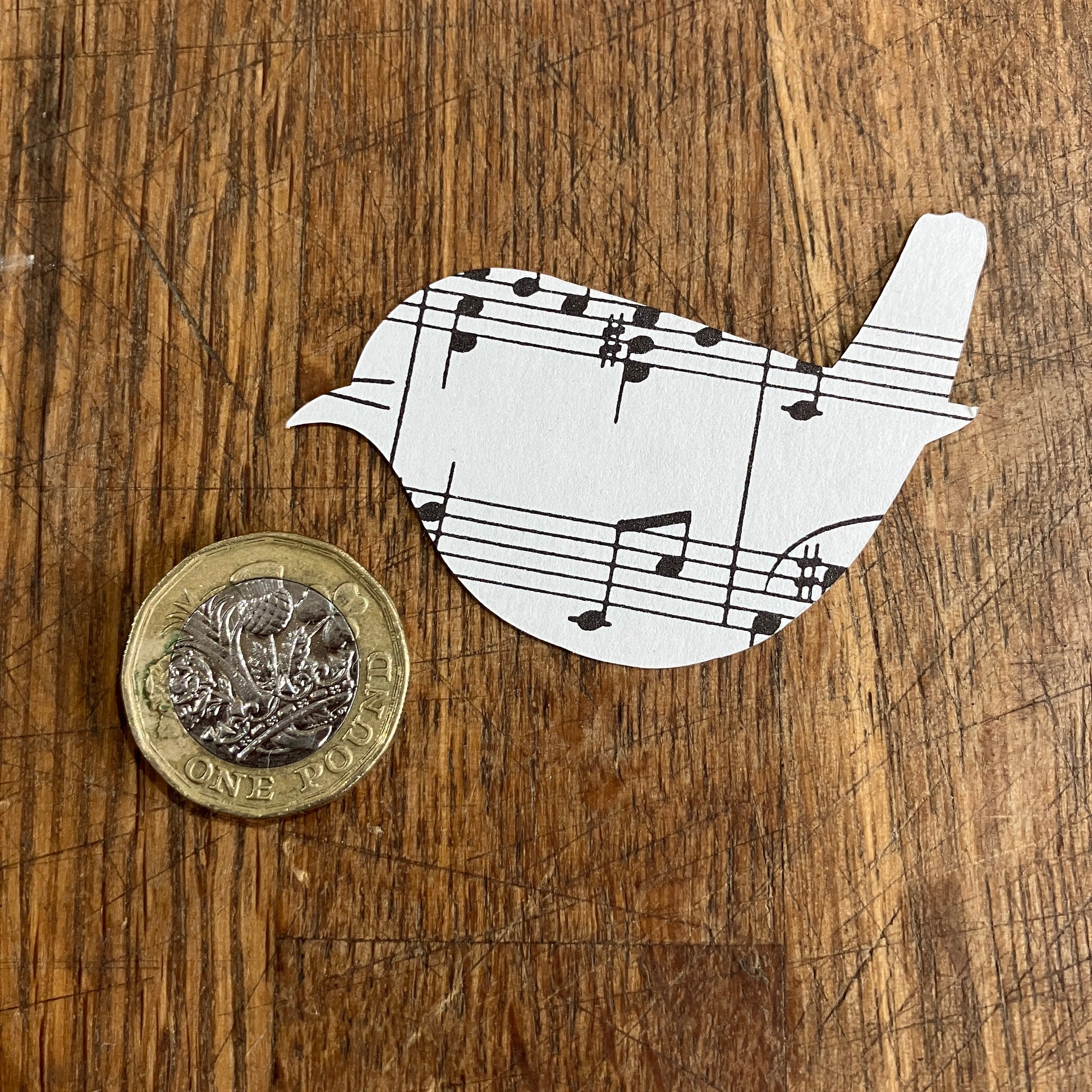 Selection of 10 handmade cut wrens recycled from a book of piano music.